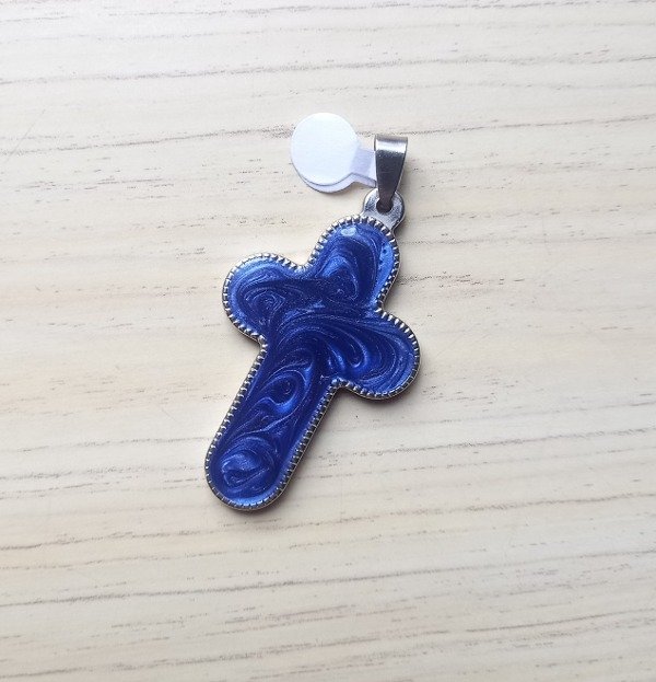 Dije cruz esmaltada azul. tamaño 5cm